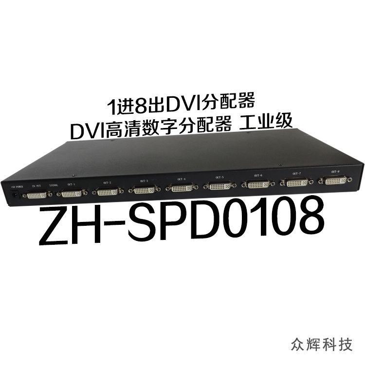 5、 ZH-SPD0116 工業型分配器輸入可支持標準DVI 和帶有HDCP 信號,從