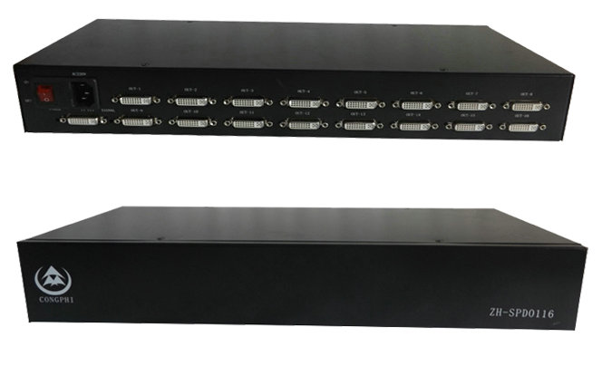 5、 ZH-SPD0116 工業型分配器輸入可支持標準DVI 和帶有HDCP 信號,從