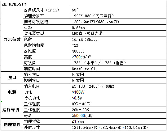 ZH-NPH5517 三星55寸1.7mm拼縫