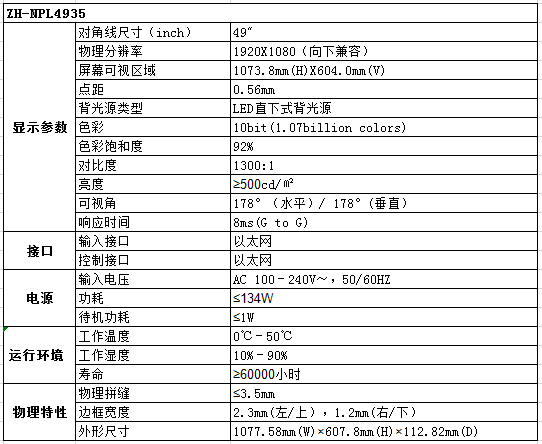 ZH-NPL4935 LG49寸3.5mm拼縫